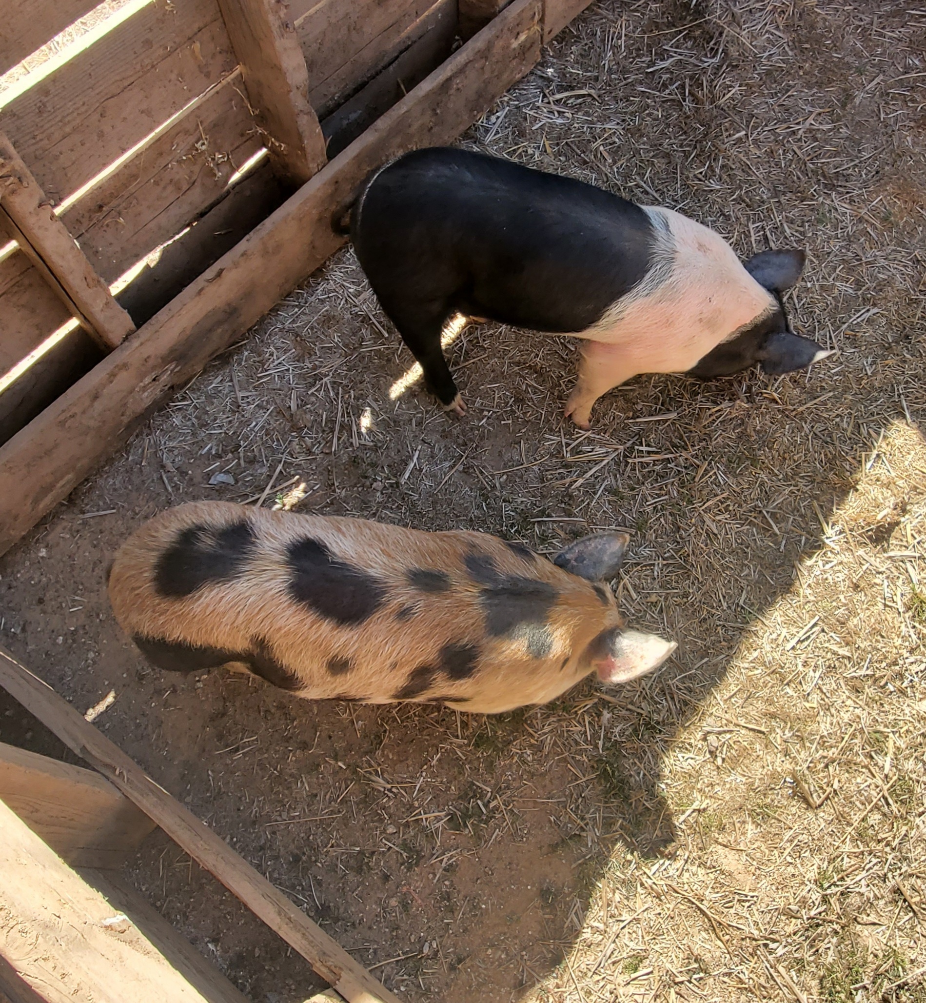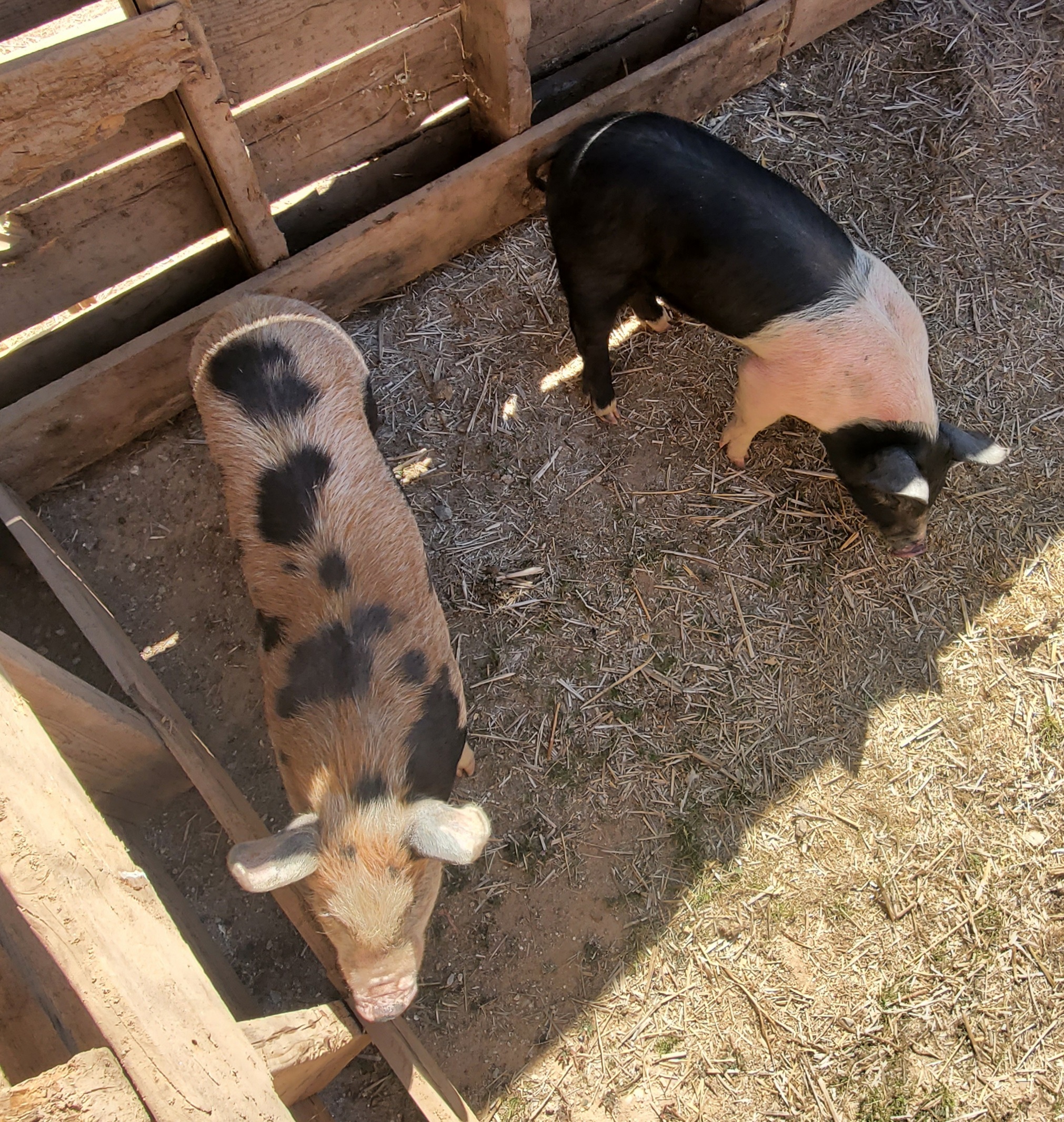 The latest round of bacon seeds have arrived on the ranch. Olive is the black and white girl and the spotted boy still needs a name. Knowing where your food comes from is priceless.